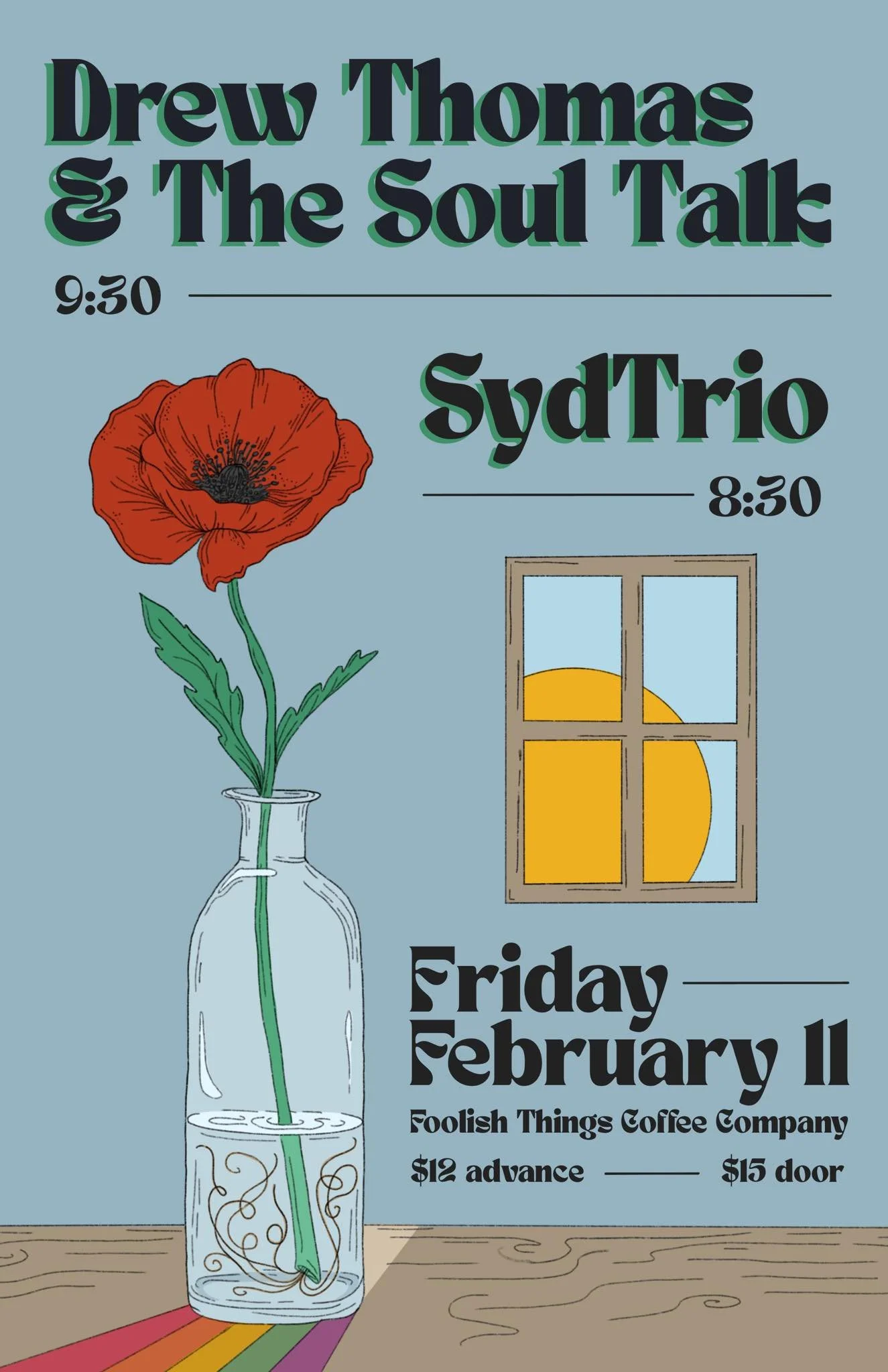 Drew Thomas & The Soul Talk will be making their big debut on February 11th, 2022. The band will be celebrating the release of their new single Porcelain Doll, out everywhere January 28th. Soul Talk is a band powered by the heart of rock and roll, but with a new spirit. Come to Foolish Things Coffee Company (1001 S Main St, Tulsa, OK 74119) for an awesome night of music. Starting out the show at 8:30 is SydTrio… an amazing 4 piece of top notch musicians who reimagine your favorite tunes in the greatest ways. At 9:30, Soul Talk will take the stage. The band will be premiering many new originals, as well as a few tunes you may recognize. This show is all ages, $12 advance tickets, $15 at the door.